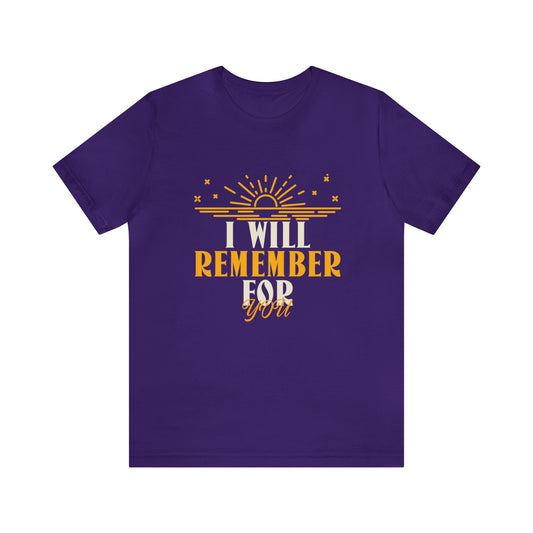 Alzheimer's awareness T-Shirt. "I will remember for you"