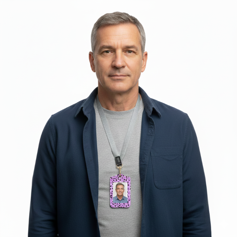 Custom Leather Name Badge For Caregiver. Alzheimer's awareness