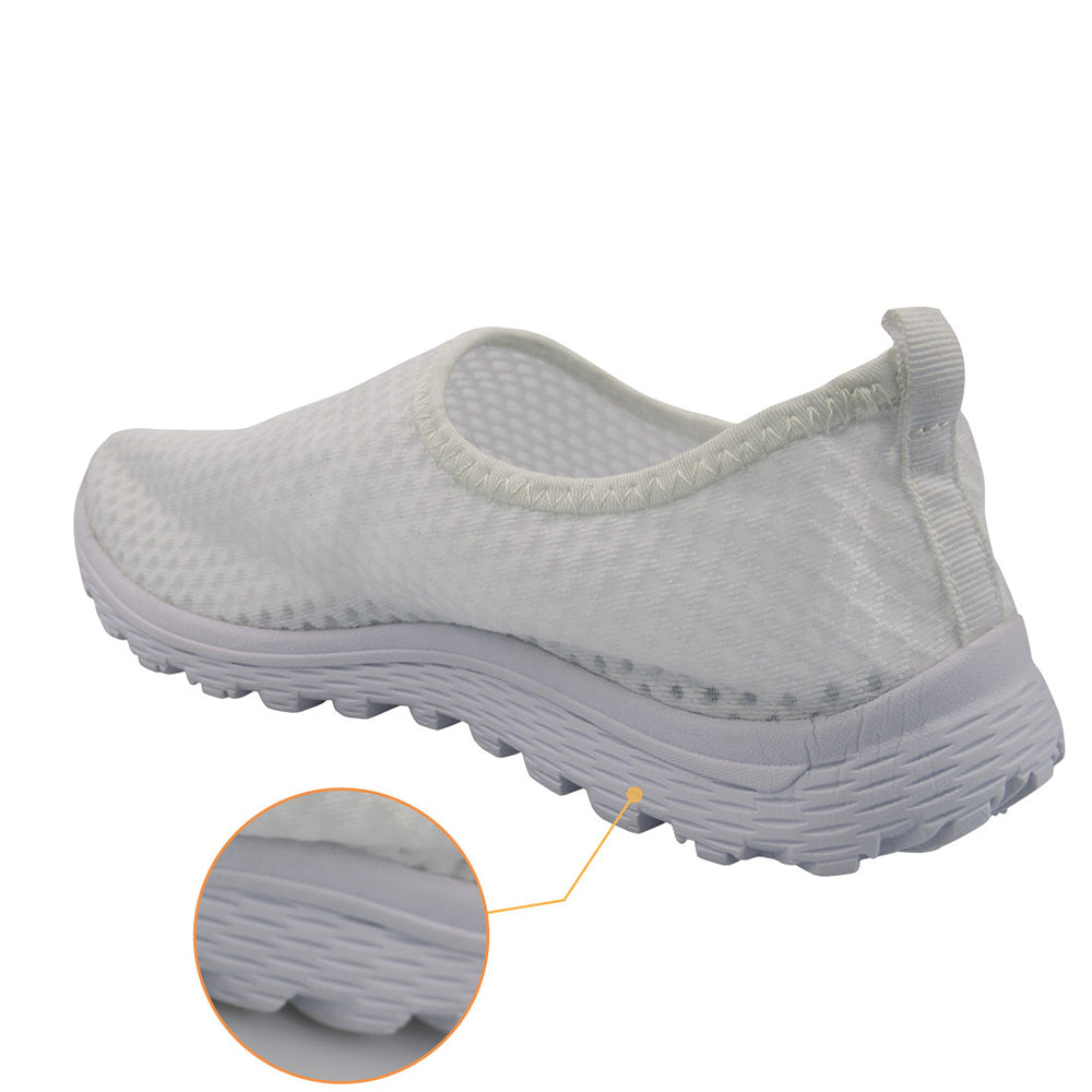 The walking shoes are made from mesh fabric, which offers a lightweight, breathable feel that keeps your foot comfortable without being stuffy.