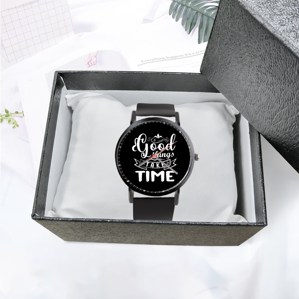Boost your motivation with our Custom Encouraging Watch. This unique timepiece serves as a daily reminder that good things take time. Perfect for caregivers and loved ones, it comes in a beautiful gift box. Order now at a great price and keep yourself on track towards success!